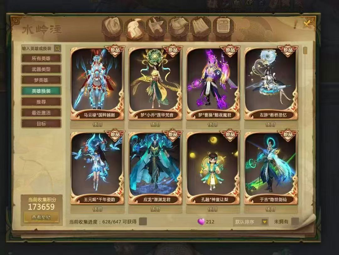 160万神兵1260爆伤 皮肤628个 有年少张角 年少马良 年少小乔 年少黄忠,