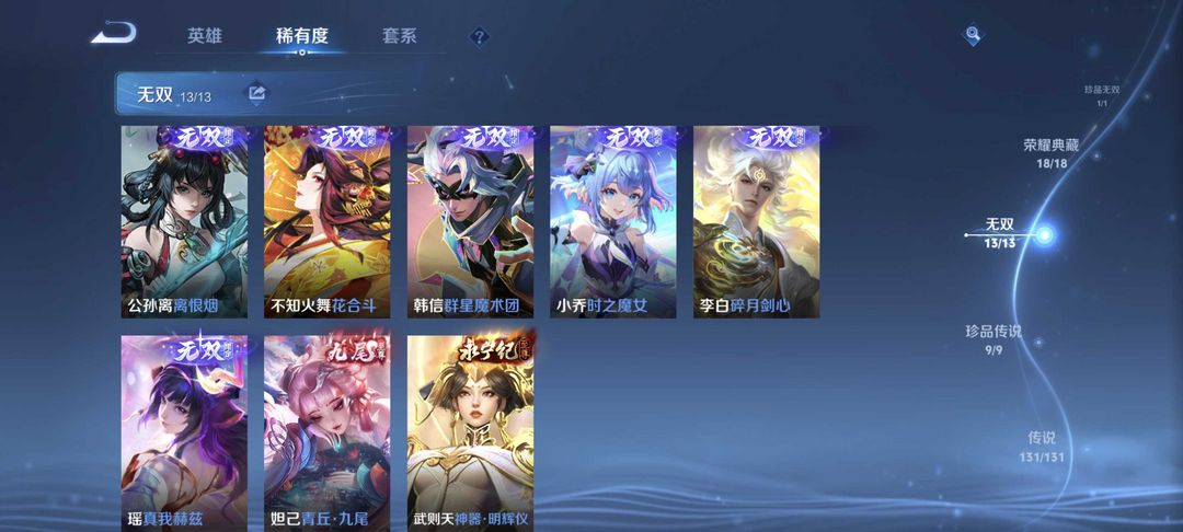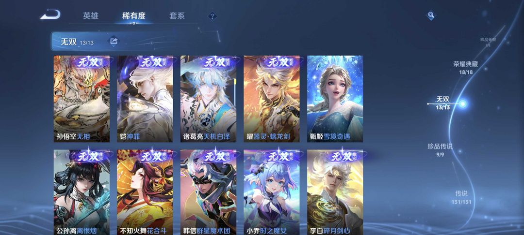 无双贵族✨全皮肤✨满荣耀典藏✨满无双限定✨猴子无相✨吕布千魇归渊✨守夜人✨天机白泽✨大耳狗之梦