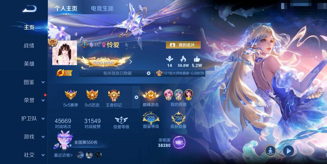 荣耀V10不禁言✨国服瑶朵莉亚✨759皮满水晶满按键满小兵15星元✨王昭君-长夜焕生