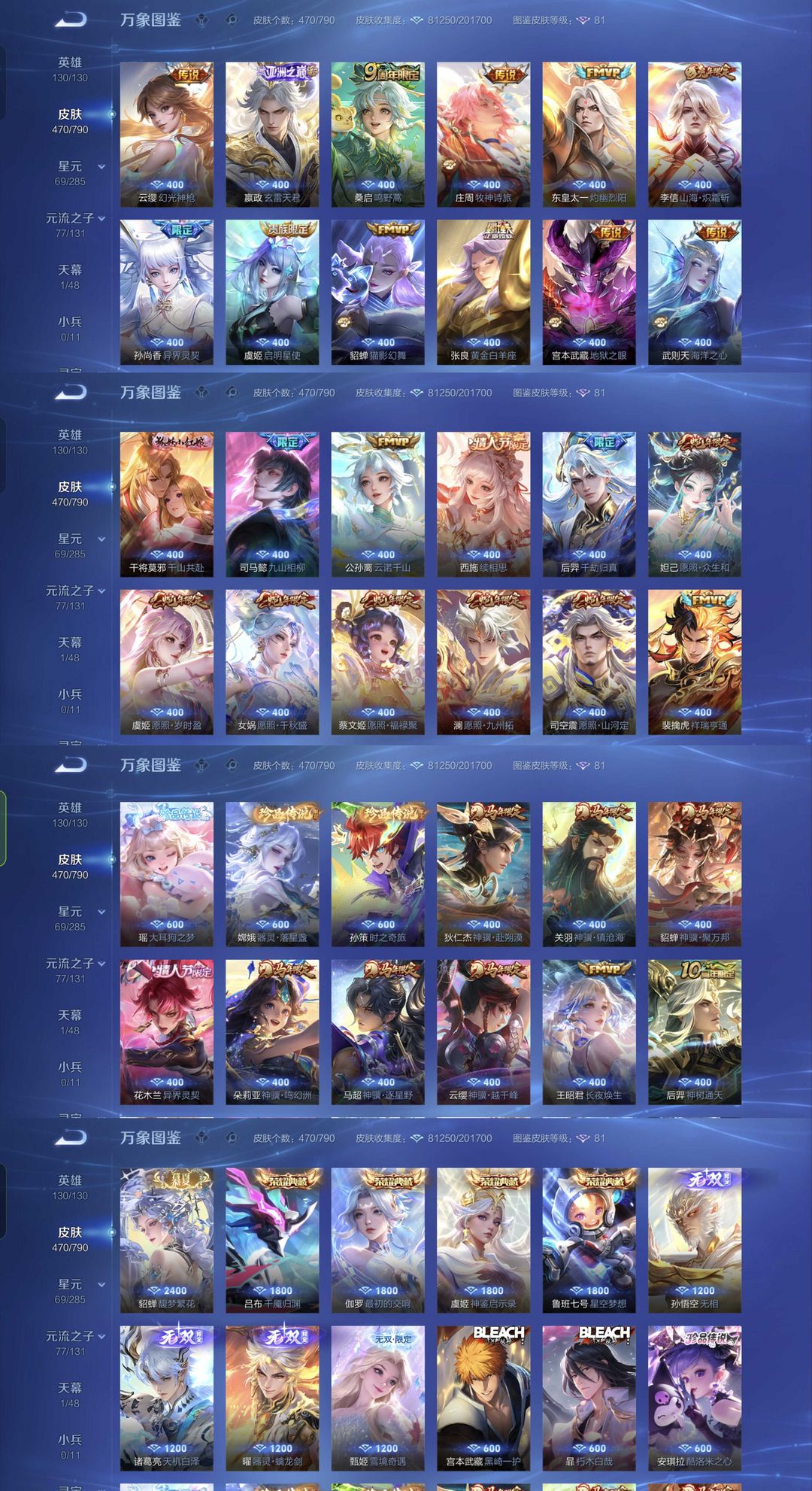 马年全套吕布典藏✨猴子无相✨11无双珍品限定✨天机白泽✨死神联动✨馥梦繁花✨螭龙剑✨雪境奇遇