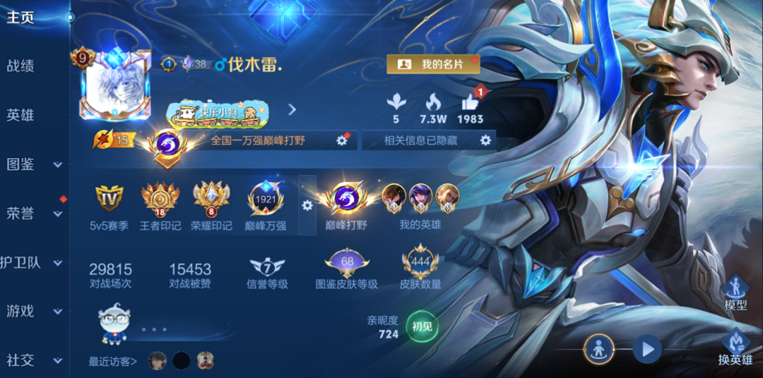 禁巅峰,在榜巅峰万强闪电框☀在榜4省韩信露娜玄策马超☀星域神启☀打野73段