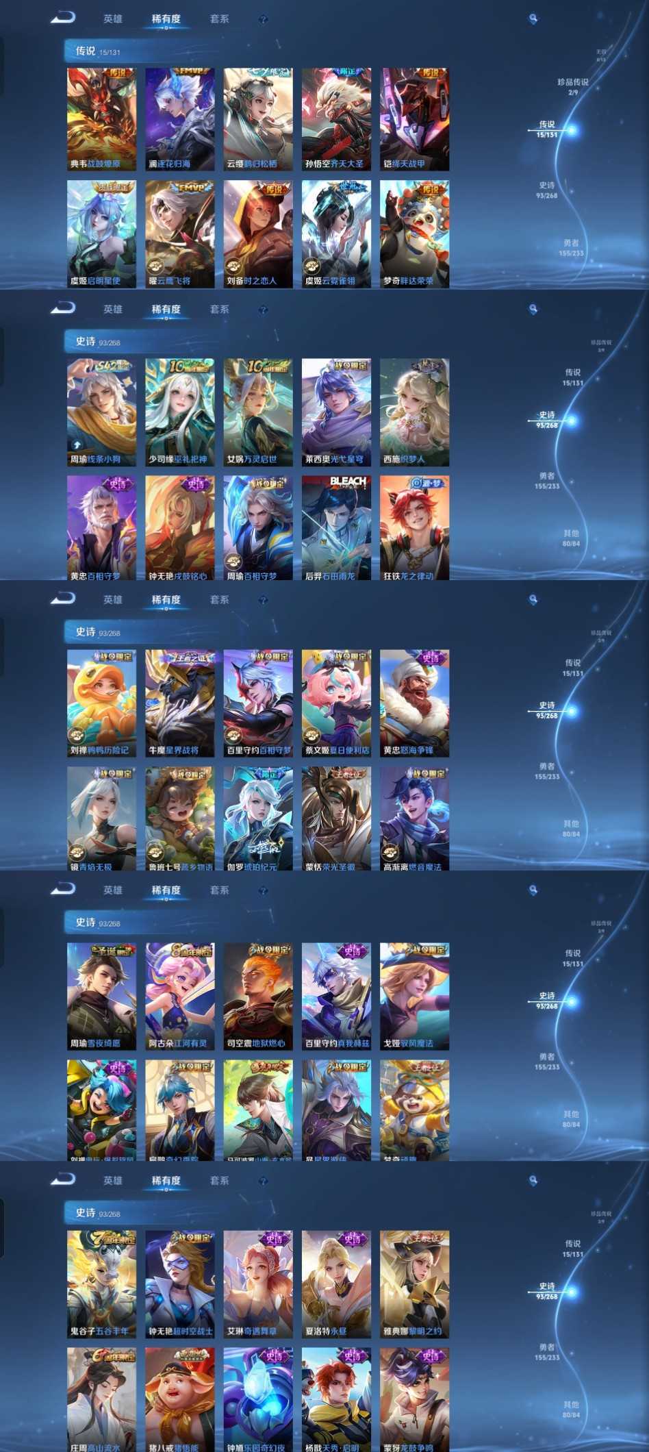限制: 租号1次及以上 | 撤单率<49%才可租用此帐号装备描述:时间到了还登录白玩或者顶号全部改密拉黑处理永不解除,顶号机器会秒禁玩改密,顶号不仅拉黑还没得玩,赚三两块不容易,请理解谢谢。 ❤❤❤❤❤❤❤❤❤❤❤❤❤❤❤❤❤❤❤ 请勿开挂,挂机,送头,骂人,撤单后游戏等如有违规永久拉黑永不解除。 重置二级密码不要费劲了,号主每天都会上号查看,多行不义必自毙,人在做天在看,多做好事多自律,少做缺德事。 该号英雄126个皮肤346个,典藏1个,珍品传说2个,星传说1个,珍品传说6个,传说15个,史诗93个,祝您游戏愉快~