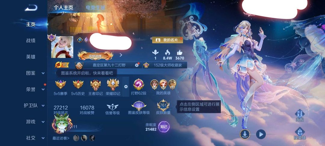 装备描述:无人敛100%上号 满皮肤 王昭君FMVP同步 历史三小国标妲己武则天张良