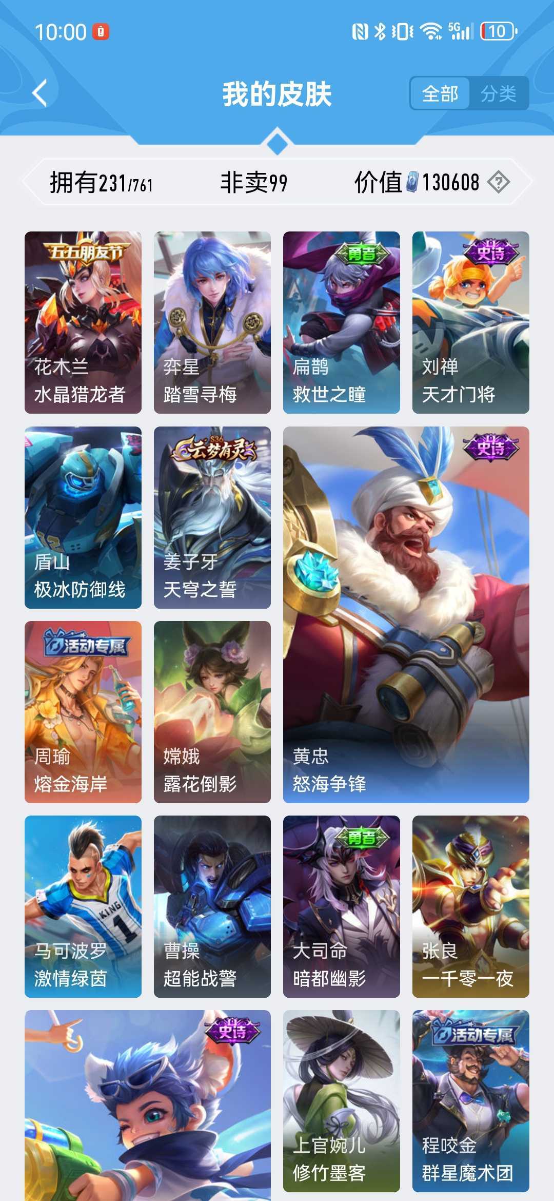 10传⭐凤求凰李白赤焰孙悟空乘龙孙策桑启鸣野蒿幻光神枪后羿神树