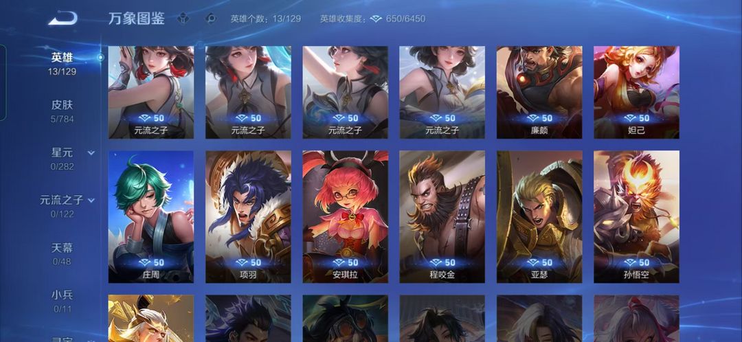 限制: 租号10次及以上 | 撤单率<50%才可租用此帐号装备描述:13英雄5皮肤妲己魅力维加斯、钟馗驱傩正仪、狄仁杰万华元夜、妲己少女阿狸、亚瑟死亡骑士