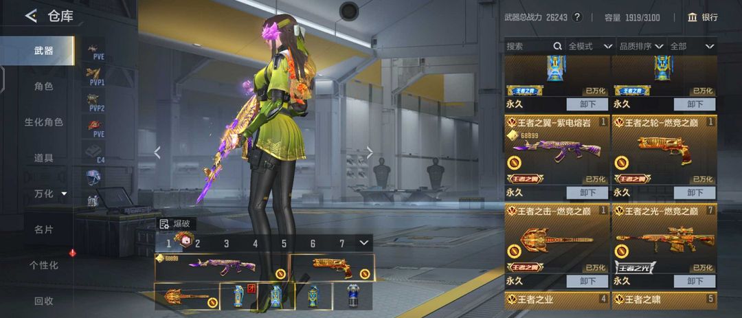 限制: 撤单率<70%才可租用此帐号装备描述:准V10王翼紫电燃竟之巅全套ぃ7同框10至尊满三国武器ぃ17冰皮74王者ぃ满音效枪线女团