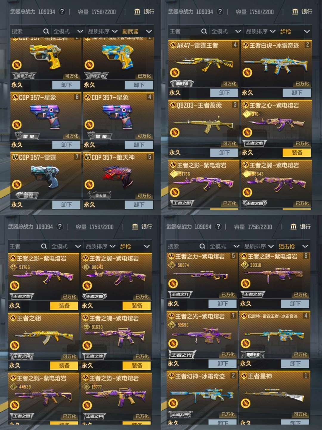 白虎星神/凤雏v10王力紫电熔岩♍️11紫电皮紫电C4♌️生化巴雷特雷霆王者白虎王者星神王幻王者蔷薇