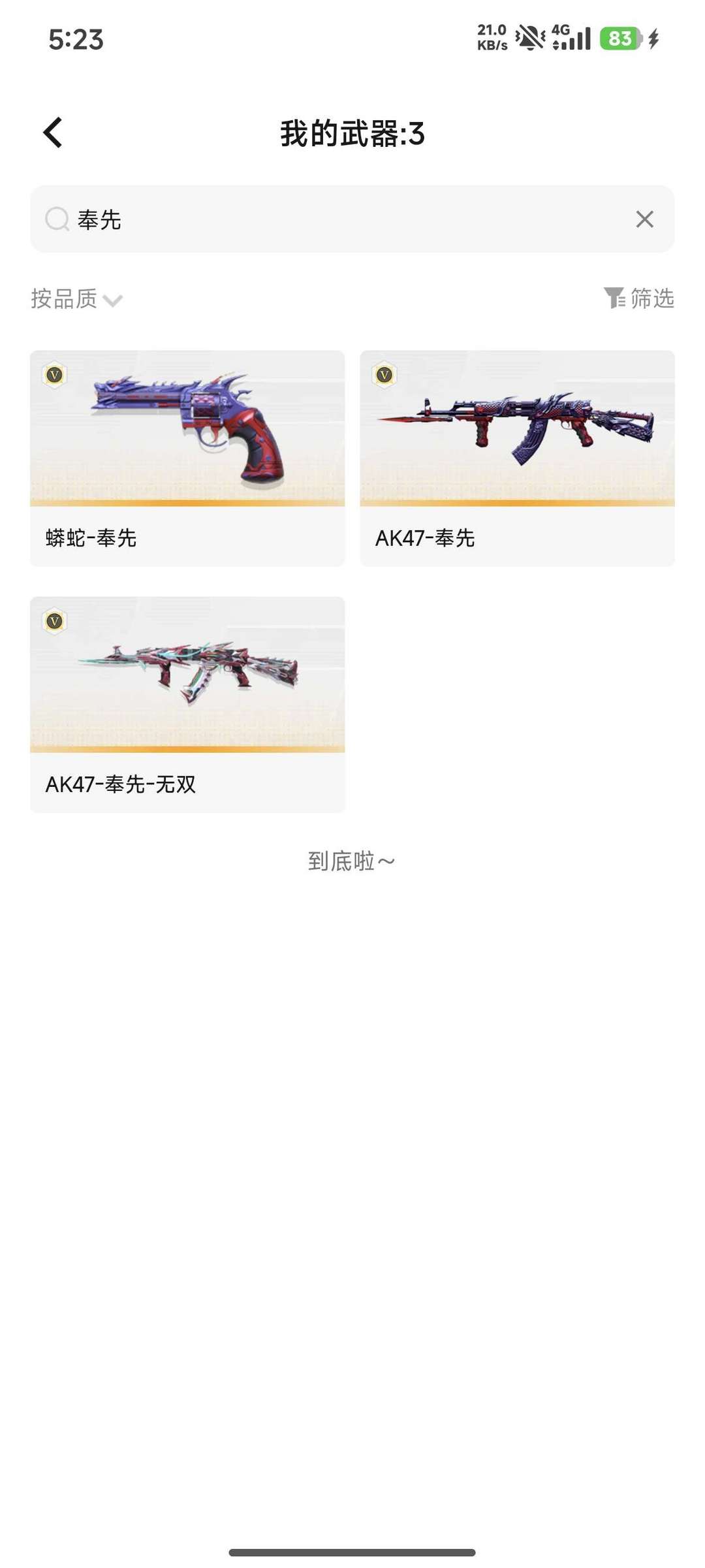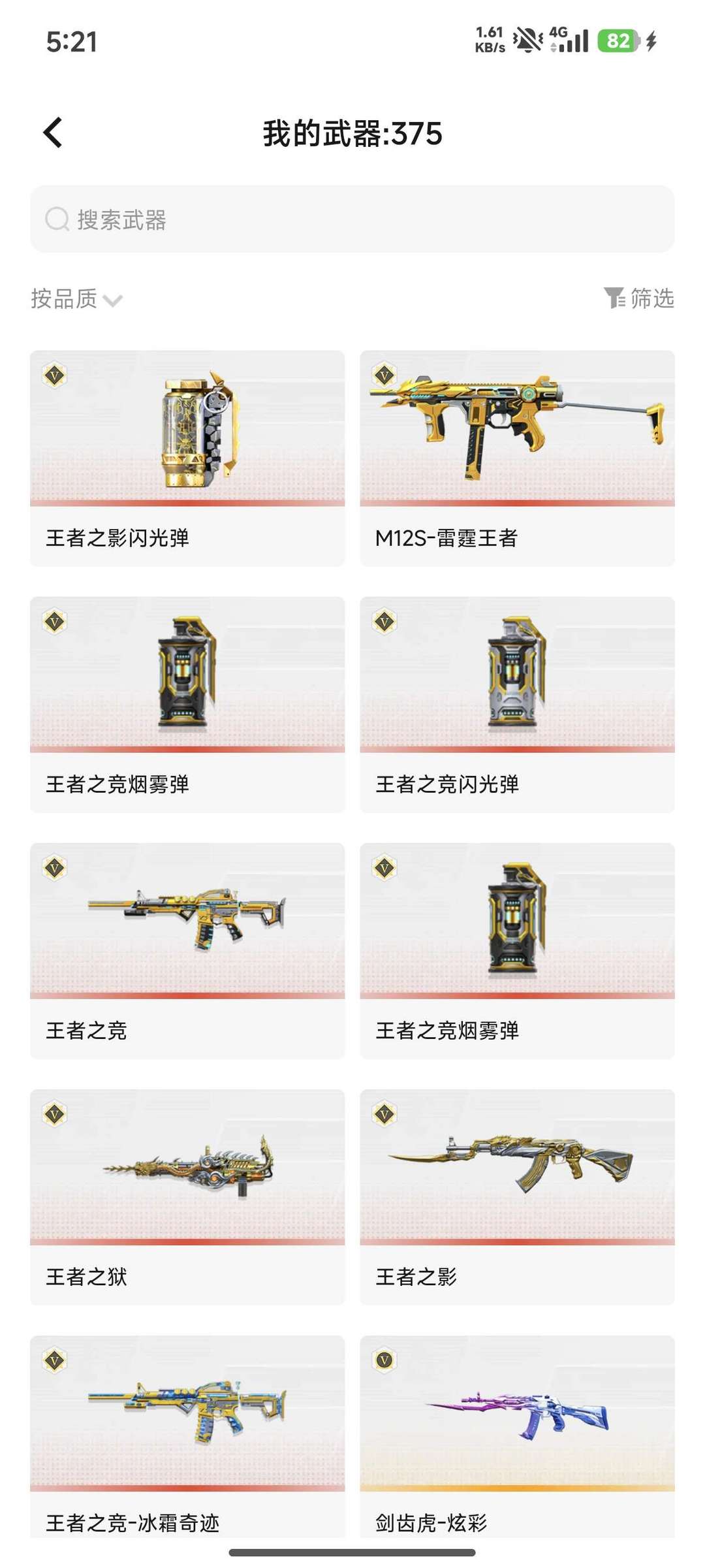 装备描述:王者之竞,王者之影,王者之狱,m12s雷霆王者,仲康,本初一套,奉先一套,m4星象,星象投掷物一套,m200权,幻神,ak游骑兵,awm游骑兵,9a91游骑兵,m4a1游骑兵-香香,cop堕天使,安琪拉,旗袍,雷霆,柯尔特仲达,极品爆破专用号