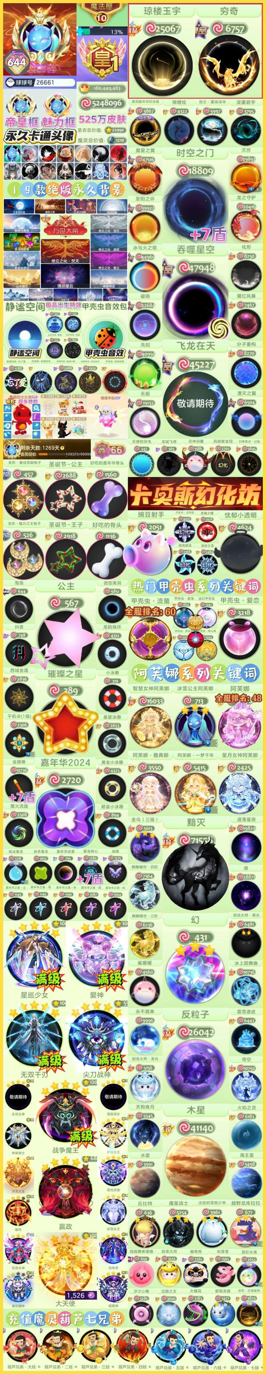 644秀【满级魔王/黯灭/静谧空间】飞龙黑洞时空❤️24嘉年华公主⭐️6款阿芙娜/8款甲壳虫/满级幻