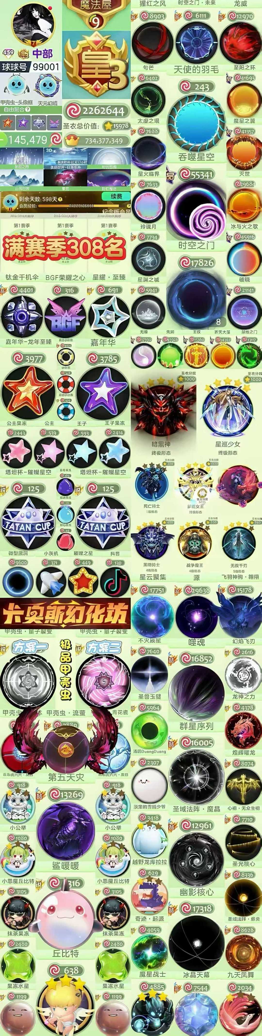 ❤满赛季稀有308名真实排名❤嘉年华 星空塔坦杯 龙年嘉年华 王子公主 星耀至臻 永夜之翼 黑洞时空