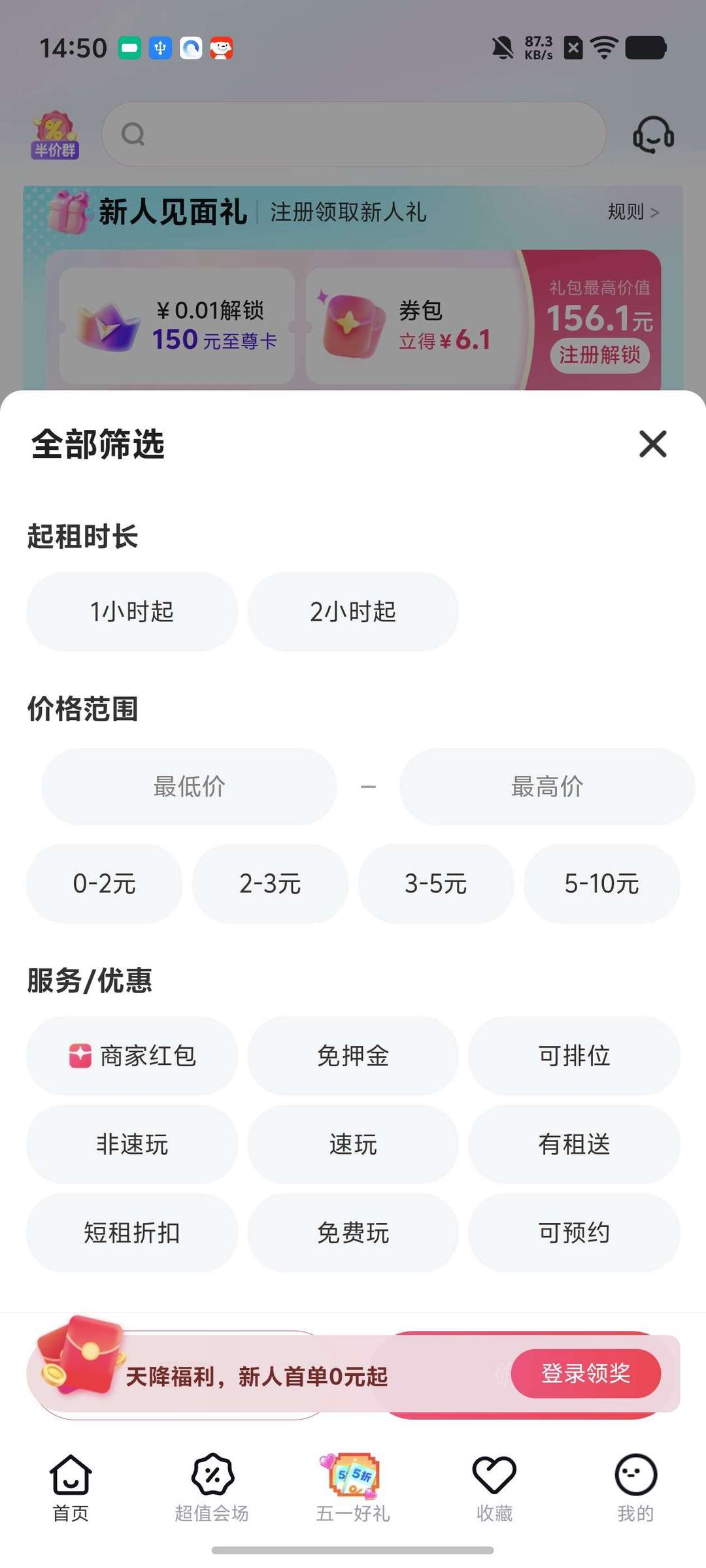 租赁时间:0小时 + 包夜