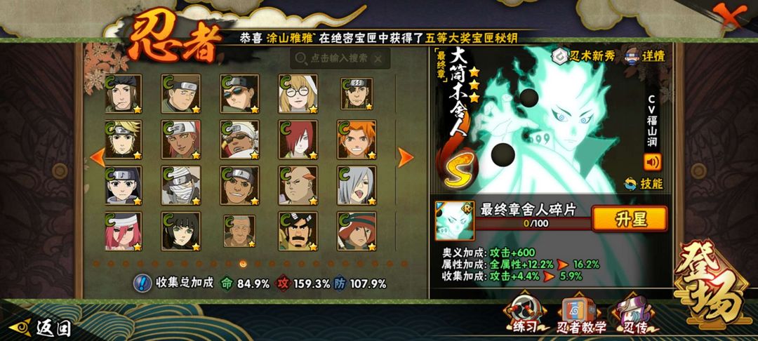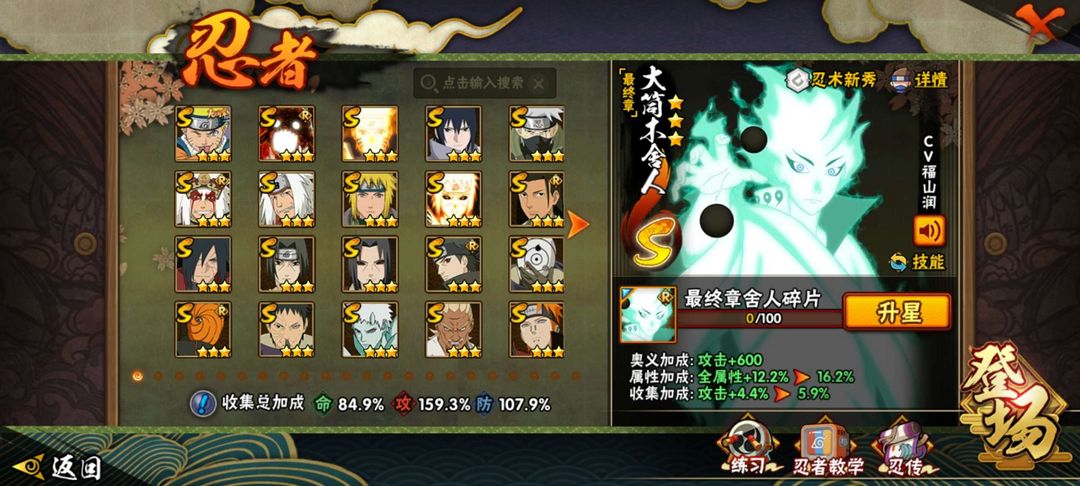装备描述:有十几个s忍,满级霸体,九个198忍者,。看看图片还有十几个18元趣味c忍