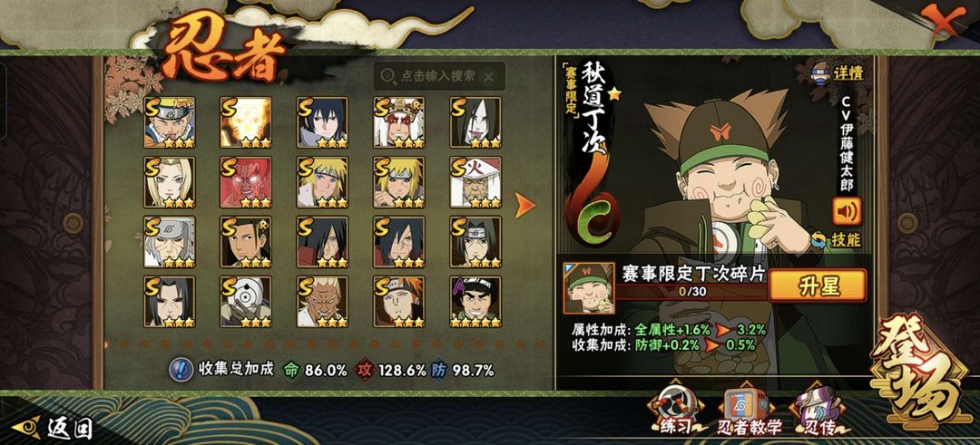解斑♐死水♐死二♐黄猿♐永佐♐漂带♐桀骜之刃阿斯玛♐白面具♐百战水♐创立柱间♐死斑