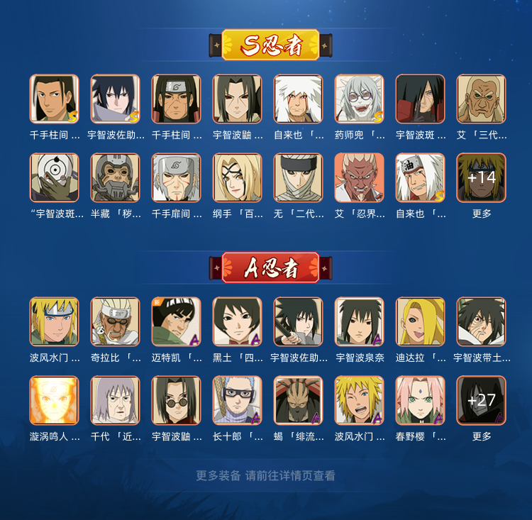 30s,有初代柱间,创立柱间,秽土长门等忍者