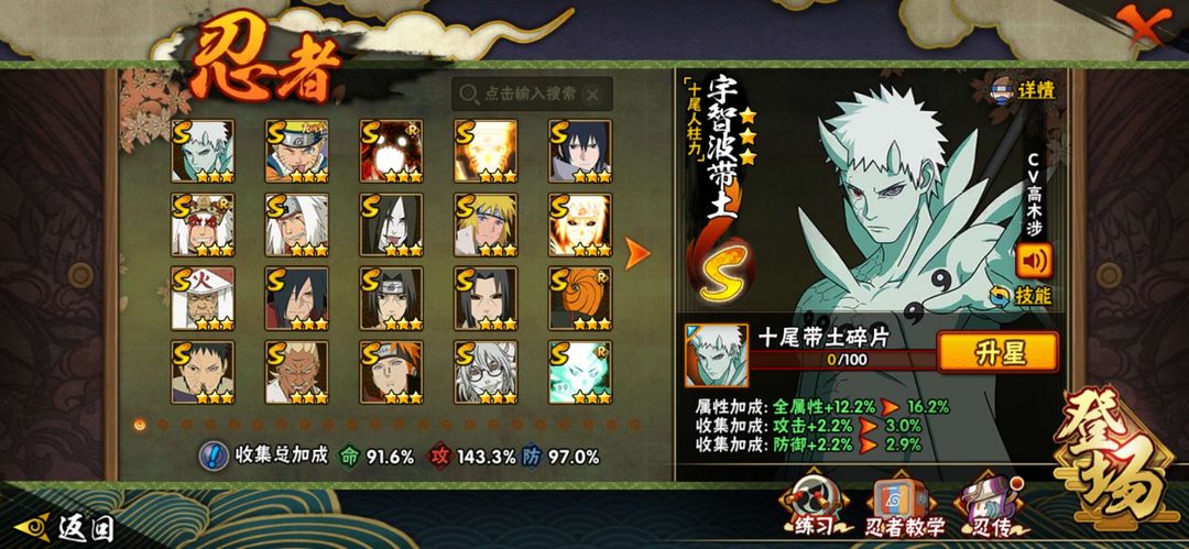 20S,50A,202忍者,十尾带土,晓创生迪达拉,解斑,暴怒六尾,大筒木舍人,漂泊再不斩,新春鼬