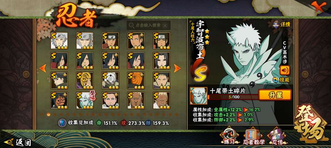 装备描述:2451w战力 53级魅力值 49s 67a,十尾带土,天道超,大筒木舍人/桃式/金式,五影斑,六尾,永恒佐,阴金身水门,秽土历代火影。侠隐佐,漂泊带土/佩恩/小南,新高招a已出