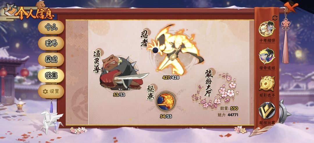 忍战带土,天道超,面麻428忍者,76魅力,至高的战力,2400藏馆属攻,全通灵
