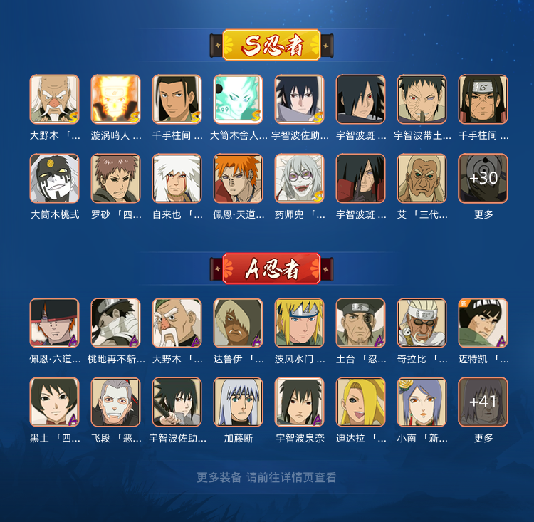 装备描述:3000w战力,47s有A侠隐佐助,新春小南,侠隐纲手,新春水门,漂泊小南,漂泊佩恩