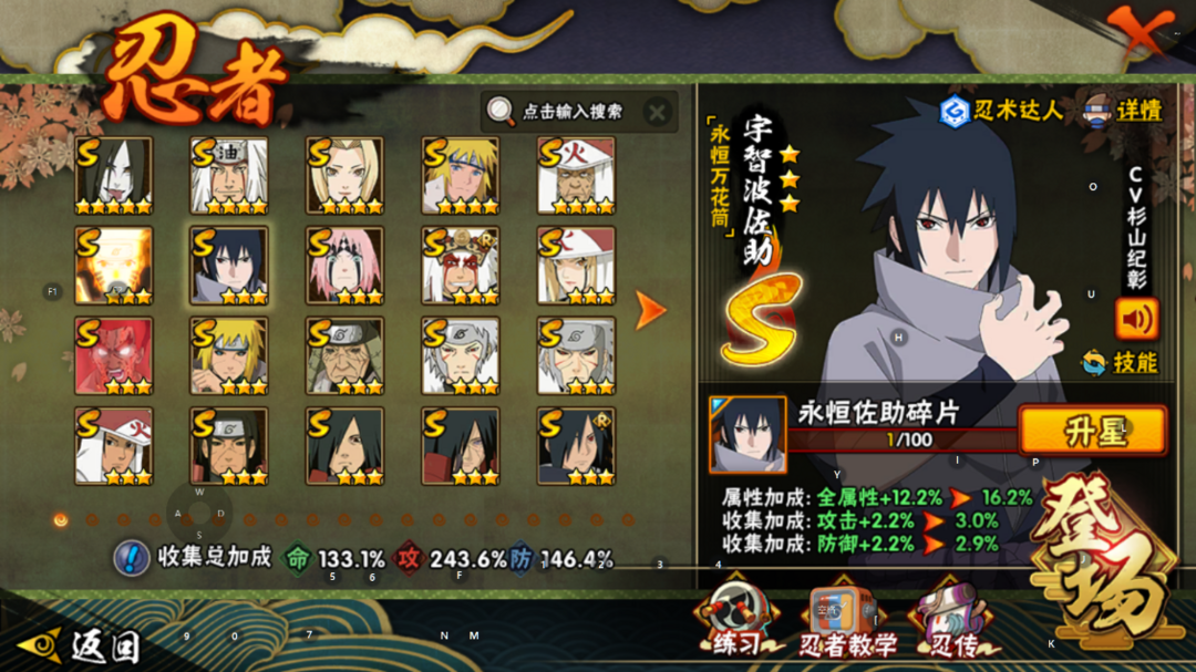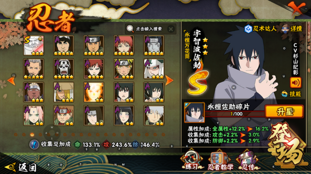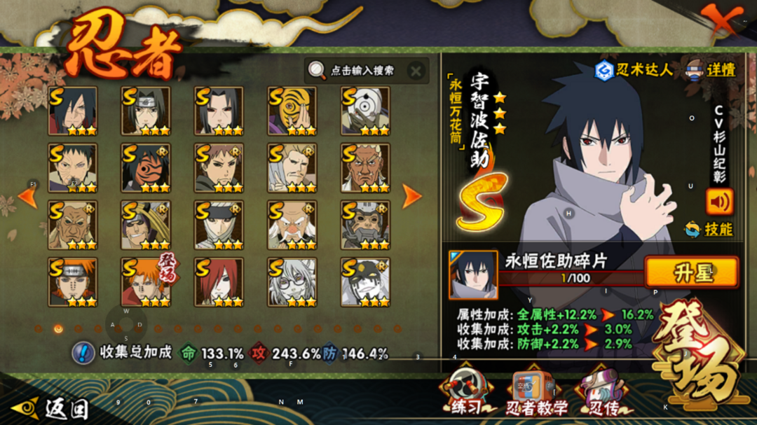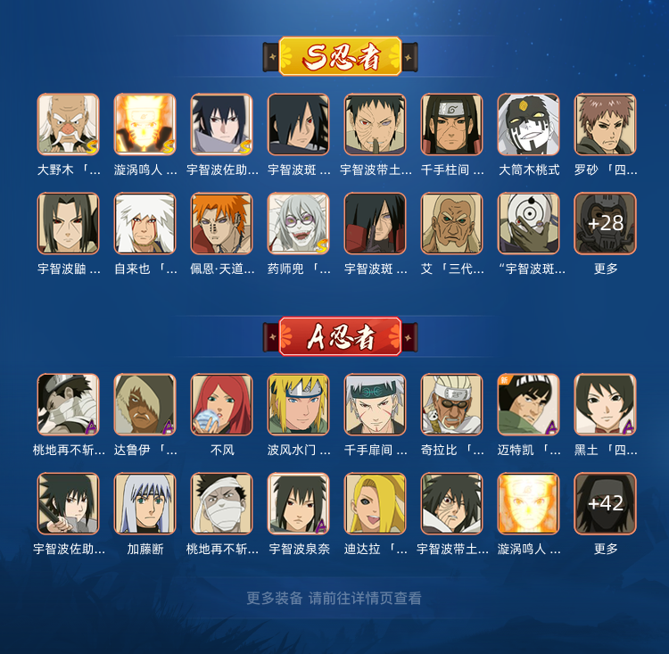 44S♦58A♦永不放弃♦漂泊扉间 ♦鲛肌 ♦永恒万花筒佐助♦九喇嘛♦解斑♦忍战带土♦天道超桃式