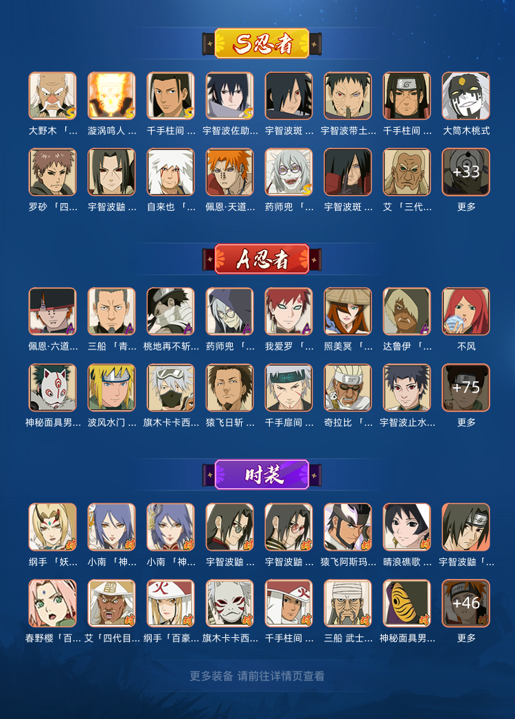 装备描述:全满v15ぃ46S♎88A大筒木金式大筒木桃式♎天道超金角银角宇智波带土♎百豪纲手扉间