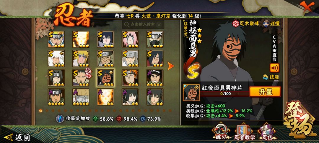 九喇嘛鸣人,秽土二代(三代),解斑,忍战樱,须佐卡卡西,忍界大战带土,红夜面具男