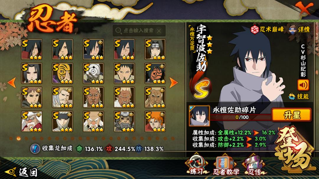 天道超☑九喇嘛连结☑25S/1333W☑秽土柱间☑40A/V11☑白面具☑半藏☑忍战雷影☑忍战带土