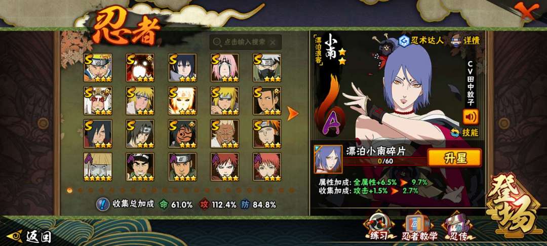 15个S 37个A 百豪樱 解斑 秽土水门 百战水 创立柱间 面麻 漂泊小南 漂泊二代0红叶带土