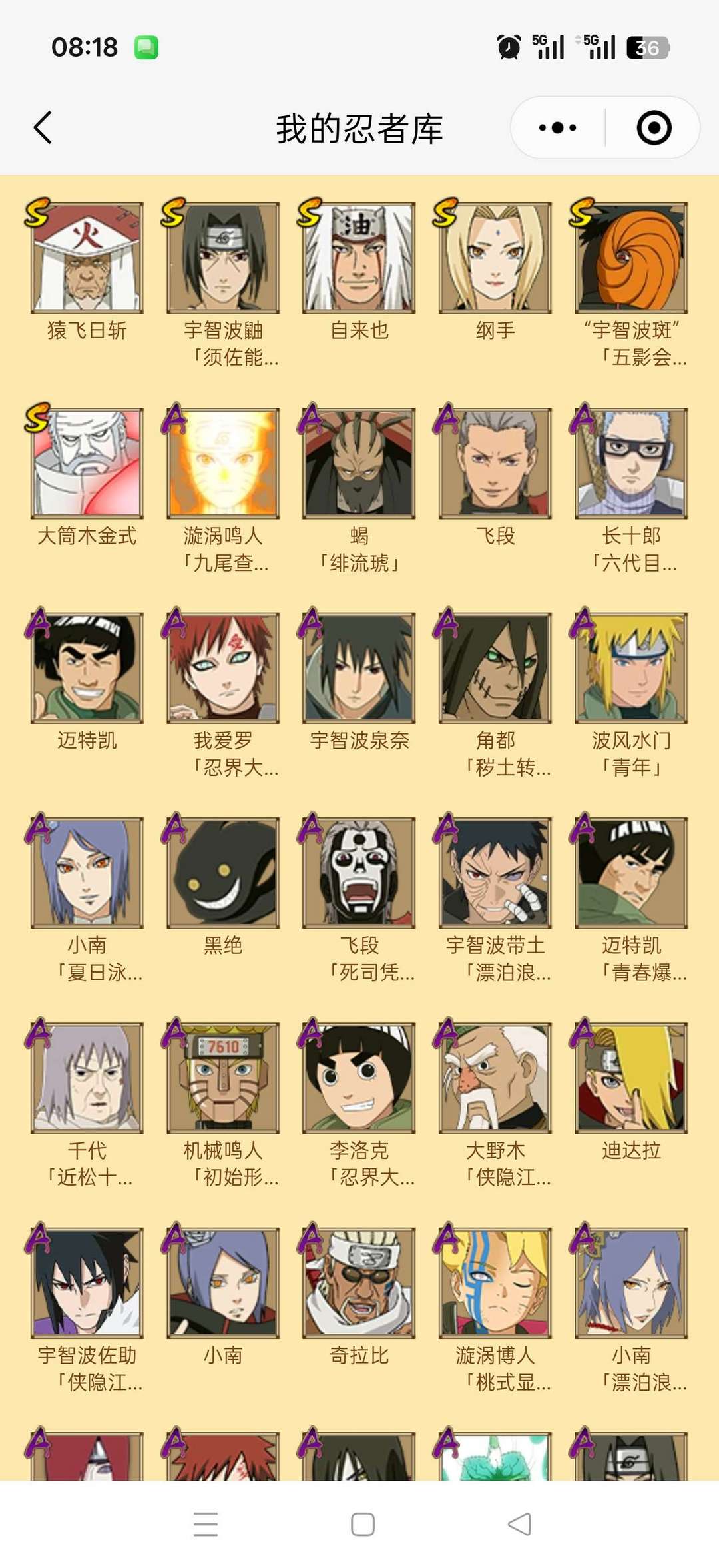 2000W战力✨36S✨50A✨十尾带土✨黑绝✨新春鼬✨漂泊带土✨神驹阿斯玛✨熊猫✨螃蟹✨万蛇✨