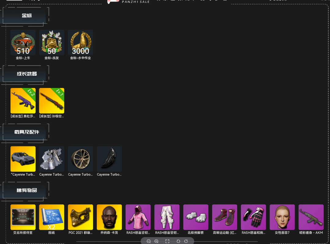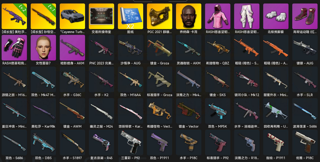 二级138138√美杜莎M762√保时捷跑车√孙悟空M24√金面具√红面巾√白熊爪√M416