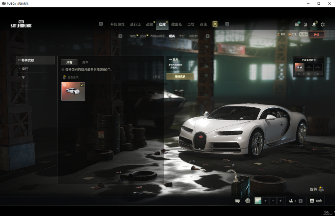 装备描述:布加迪威龙跑车✨弥诺陶洛斯MINI14✨斑点狗VSS✨无慈悲M416✨星魂套✨怪笑针织帽✨PGC防风夹克