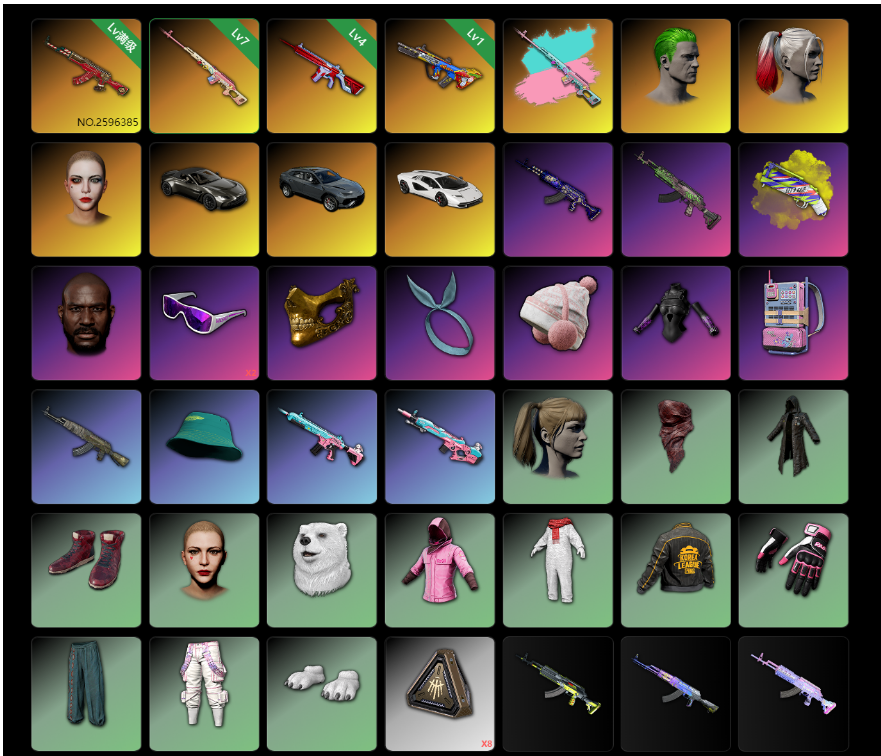 装备描述:二级密码963322兰博基尼大牛豪华SUV满级圣诞AK七级异色德拉贡六级无信号M4马丁双马尾绿头黑鬼