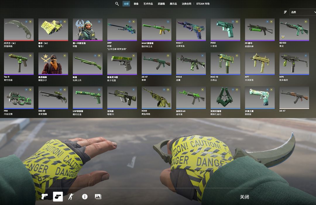 完美A✅绿色套✅爪子刀✅警告手套✅寒翠AK47✅战鹰M4A4✅树蝰AWP