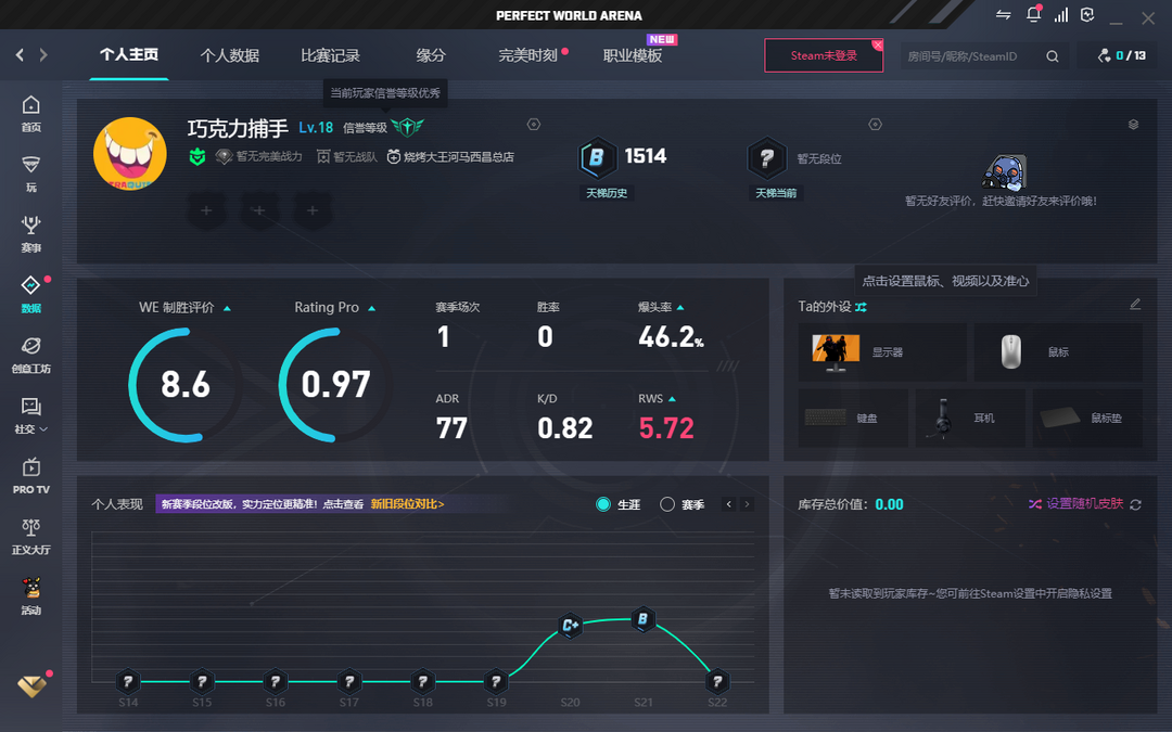 完美绿色认证账号-等级18-赛季未定级-低分带妹