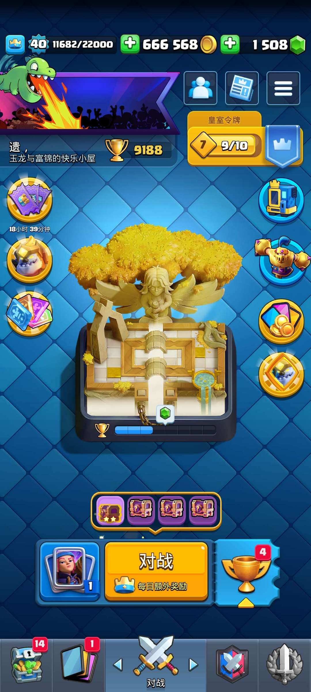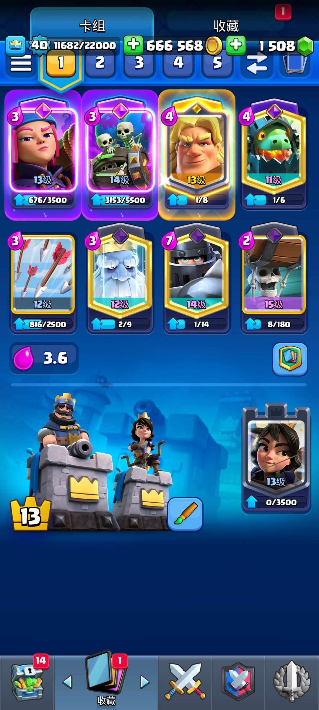 差一个满英雄 9000 多杯 有 14 级超骑 15 级炸弹人