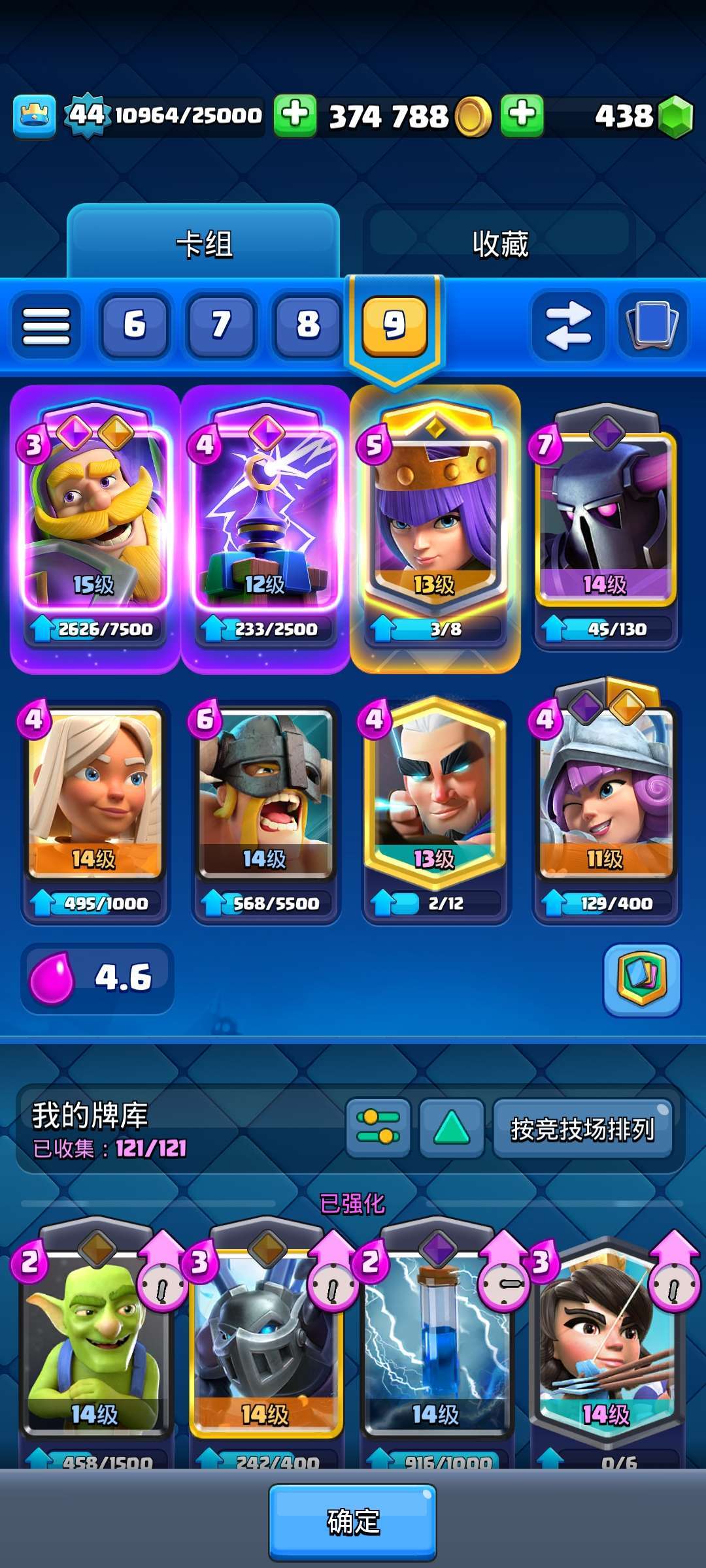 全卡组,觉醒加精英卡,14级国王塔,8500杯左右可随时练手