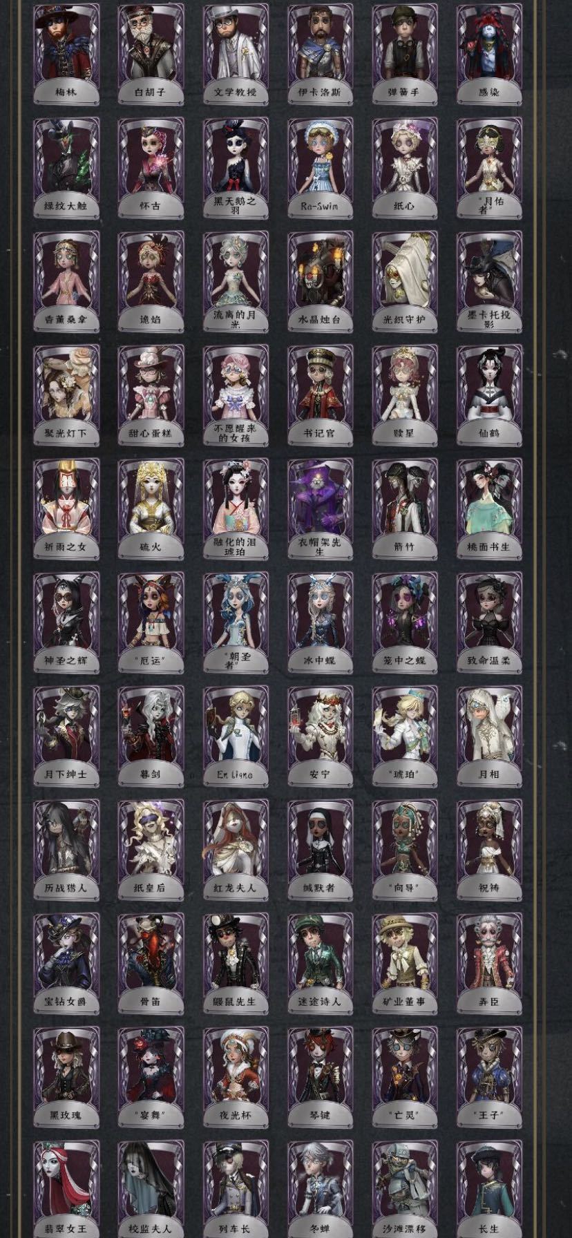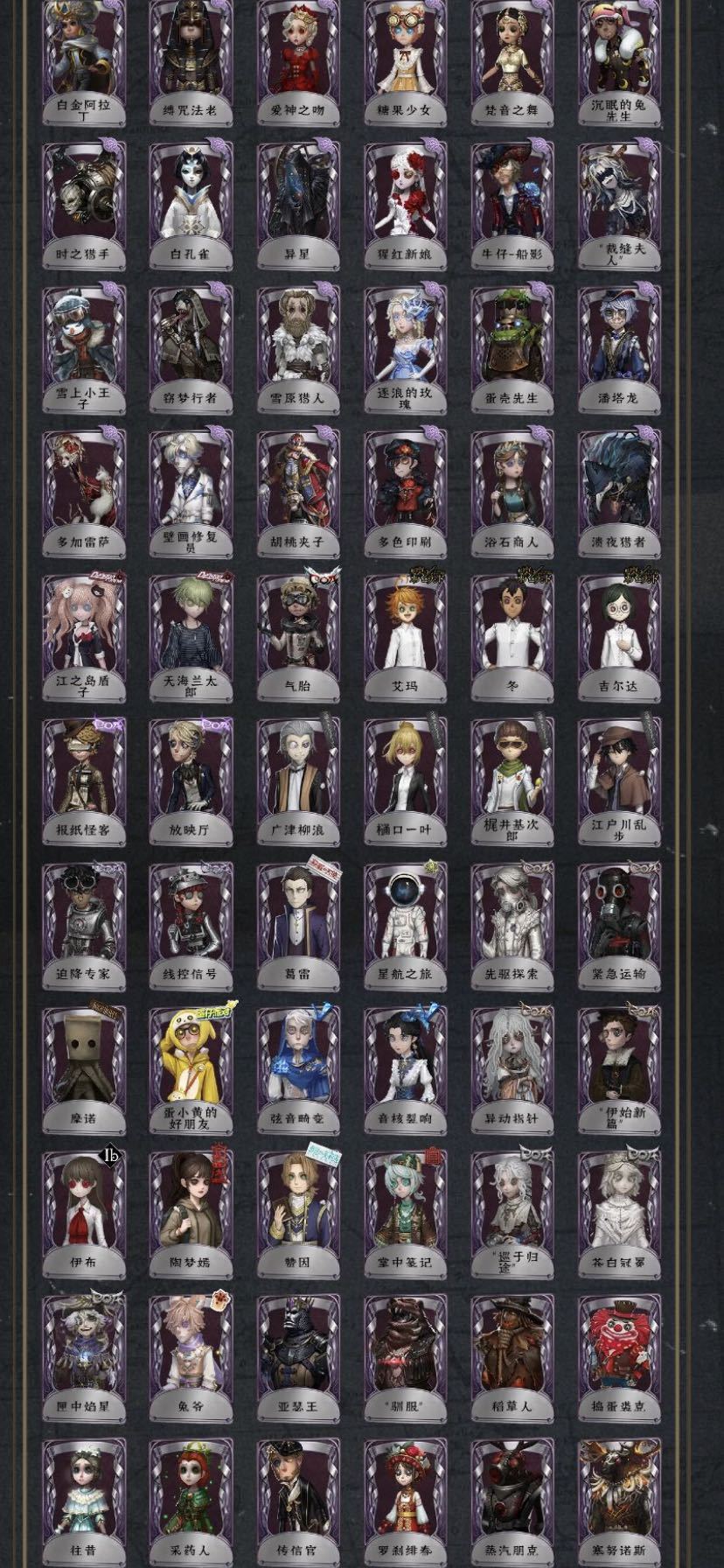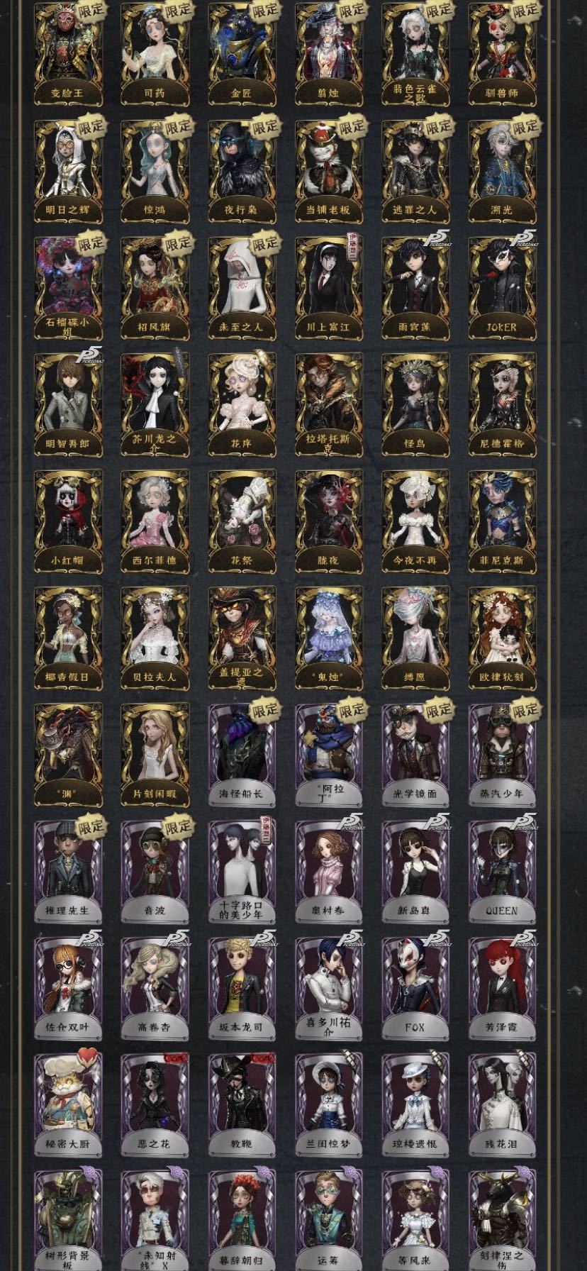 60金180紫迷雾山庄石榴碟小姐先知高配joker夜行枭芥川推理先生驯兽师明日之辉川上明智云雀之歌