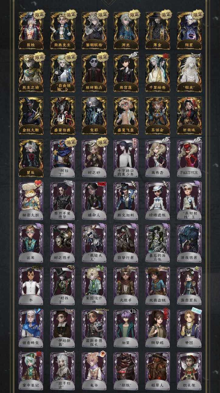 装备描述:雨燕先生 隐士薄金 台球手自由领袖 囚徒黎明赋格 约瑟夫 恒光 宿伞千里绘卷 愚人金陨星 逃脱大师死生之谕 剪烛 盛宴伯爵 茶话会 祈雨珠 星辰 雨宫莲 变彩 盛夏飞盘 时之砂 高卷杏 十字路口的美少年 阿拉丁 守墓人 家园设计师 佣兵火炮手 勘探双面盗贼 嬉命人 加里 好孩子 剪刀手爱德华