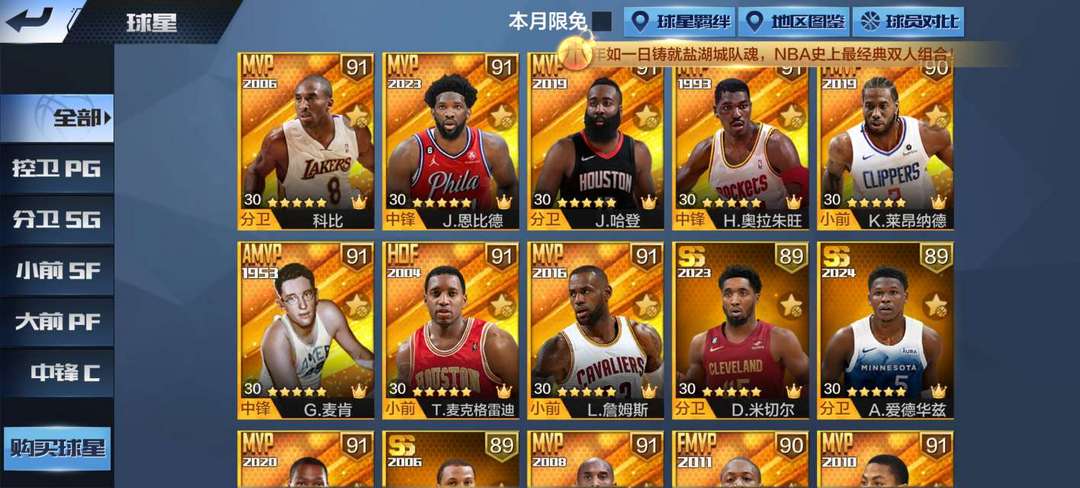 ⭐天选麦迪,哈登,罗斯,06.08科比,大梦,鲨鱼,20杜兰特。以及其他55个点券。可排位。