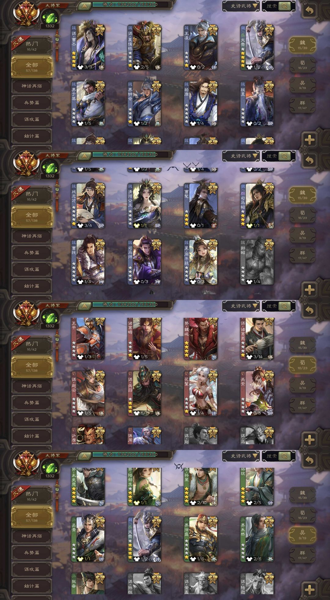 有卡!势魏延势于吉势太史慈/至尊谋孙策/曹髦谋曹丕张奋十常侍/动态谋关羽谋貂蝉/动态神华佗司马懿