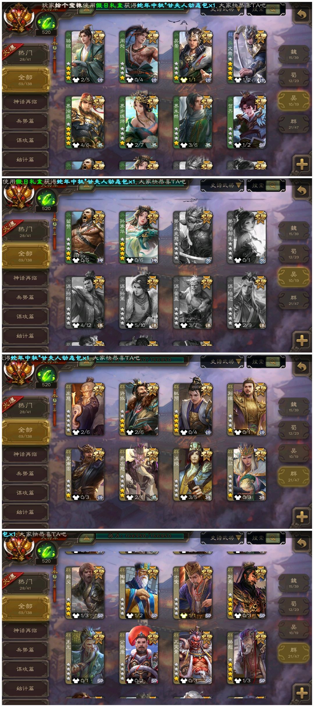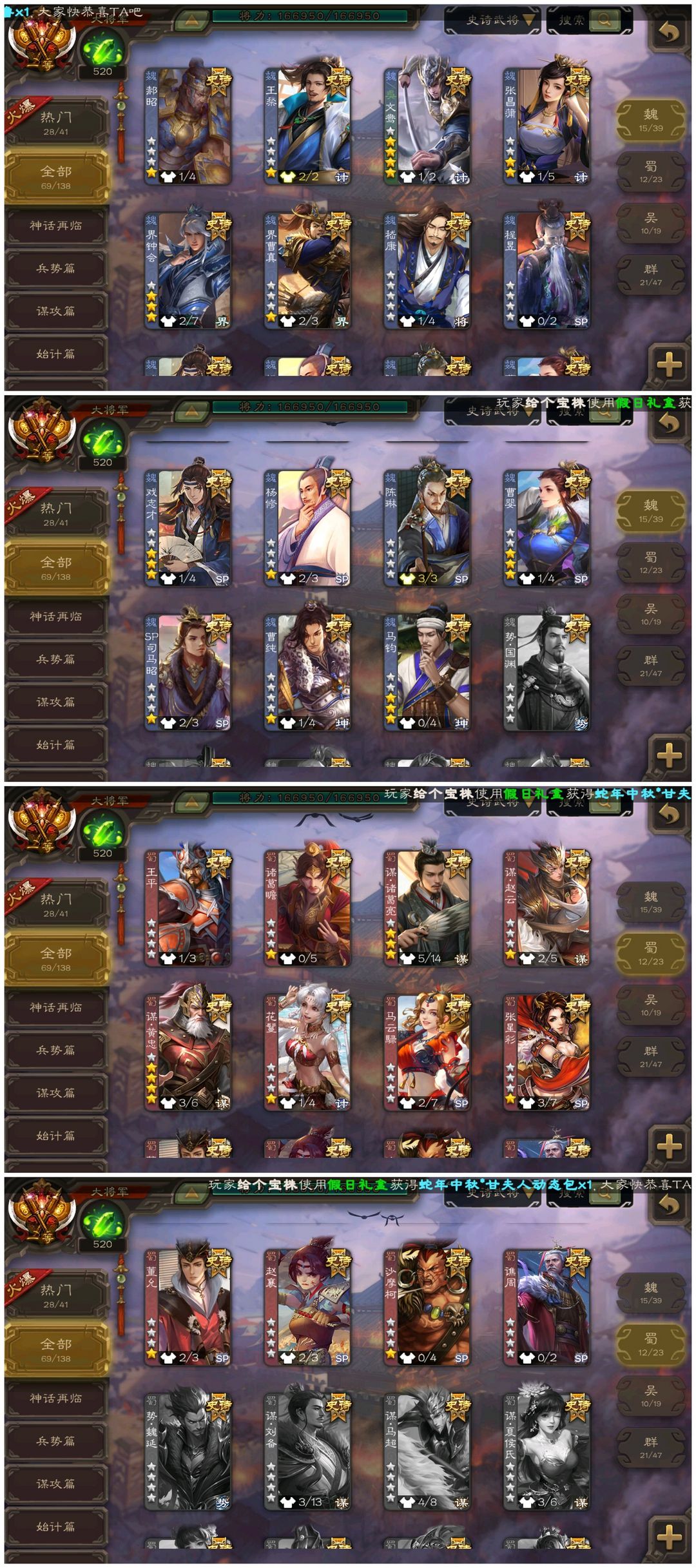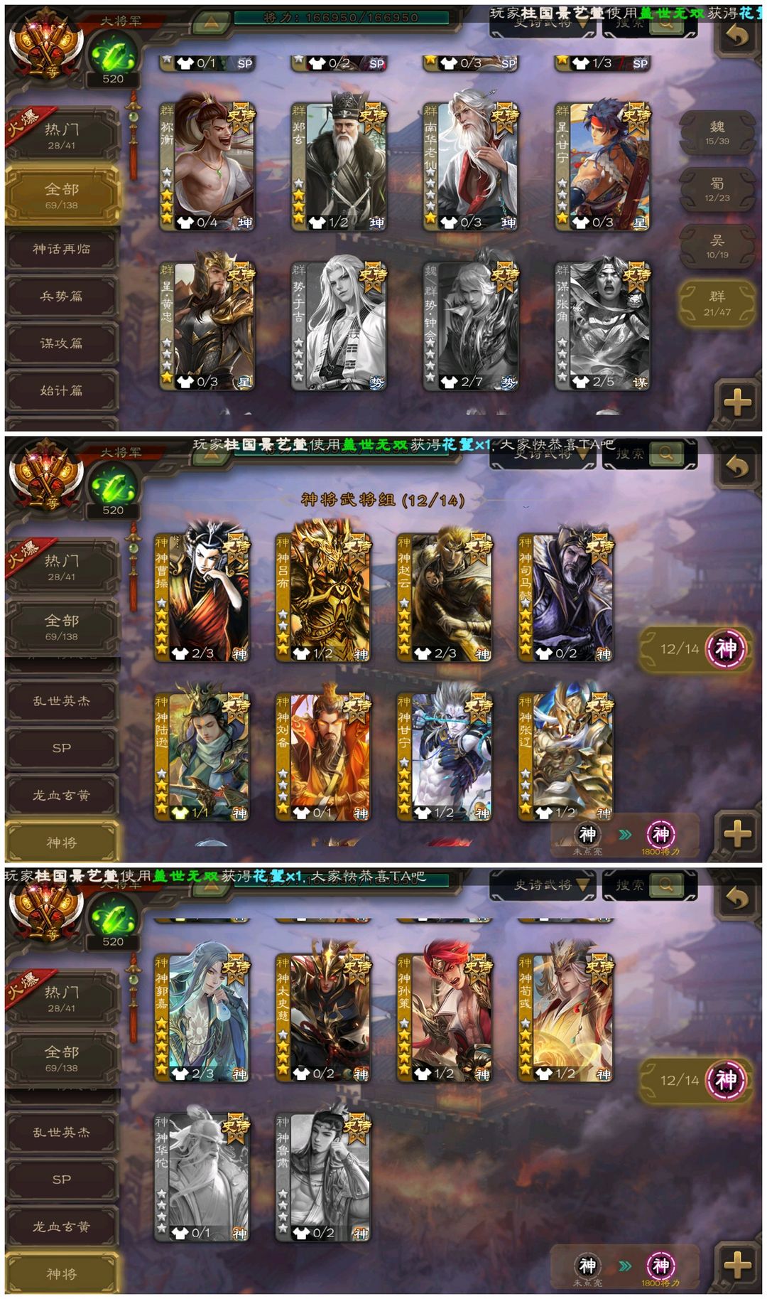 【一等大将军】◆回廊神郭嘉刘焉动神荀彧神司马懿动神甘宁动界钟会谋黄忠动界徐盛戏志才动神孙策SP司马昭