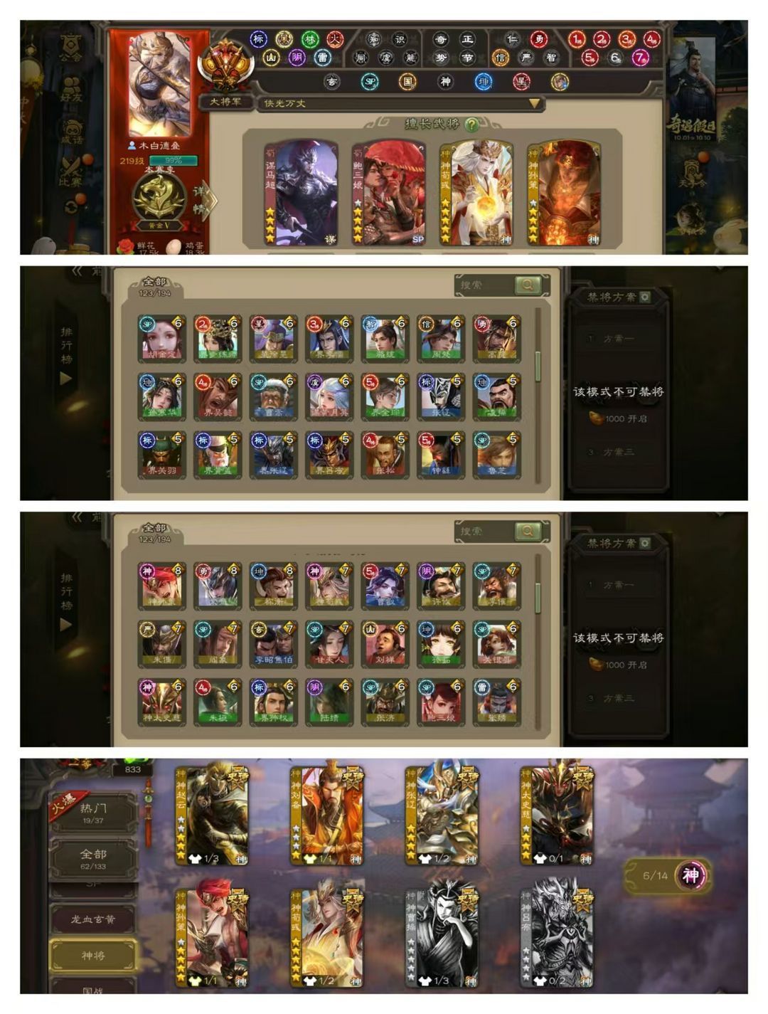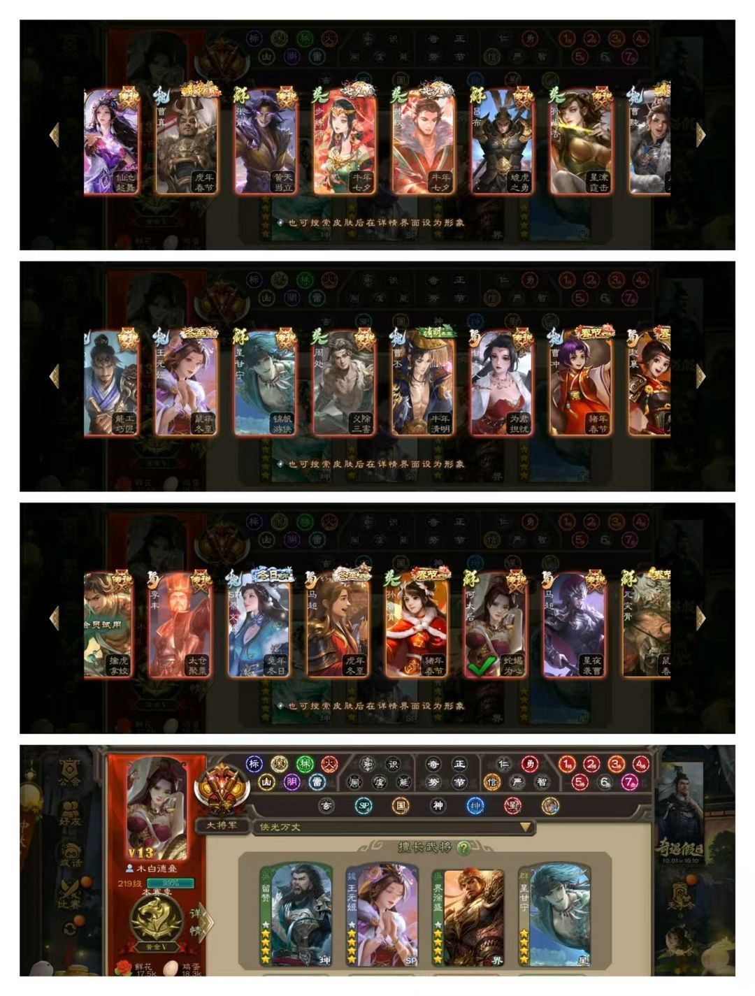 限制: 撤单率<19%才可租用此帐号装备描述:官方一等大将军,无卡,VIP13! 3五星炎龙:回廊动孙寒华! 15四星玉龙:回廊动神孙策,回廊动星甘宁,动神荀彧动留赞动界孙权,金神关羽,骆统! 63史诗武将,回廊动张星彩,回廊动界黄忠,回廊动谋马超,动鲍三娘动王元姬动王璨,金界徐盛金界钟会金界李儒,崔芙文鸯裴秀傅佥聚义神太史慈神赵云南华老仙周处刘璋等! 78动皮170金皮250国战皮肤!