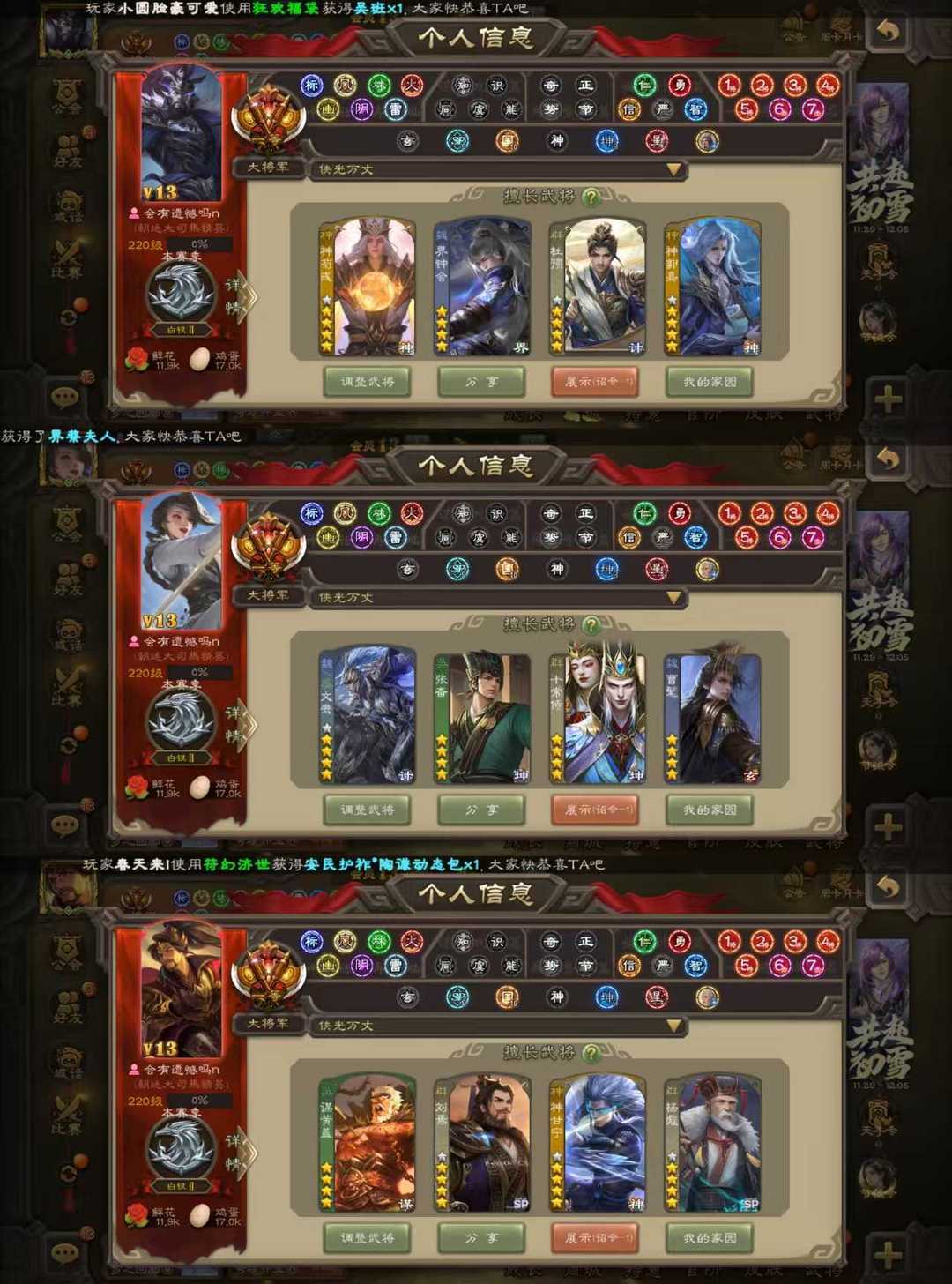 【有手气卡】23w将力93史诗95动皮六巨头三至尊一等大将军/动态刘焉/动态神荀彧/曹髦/谋黄盖/杜