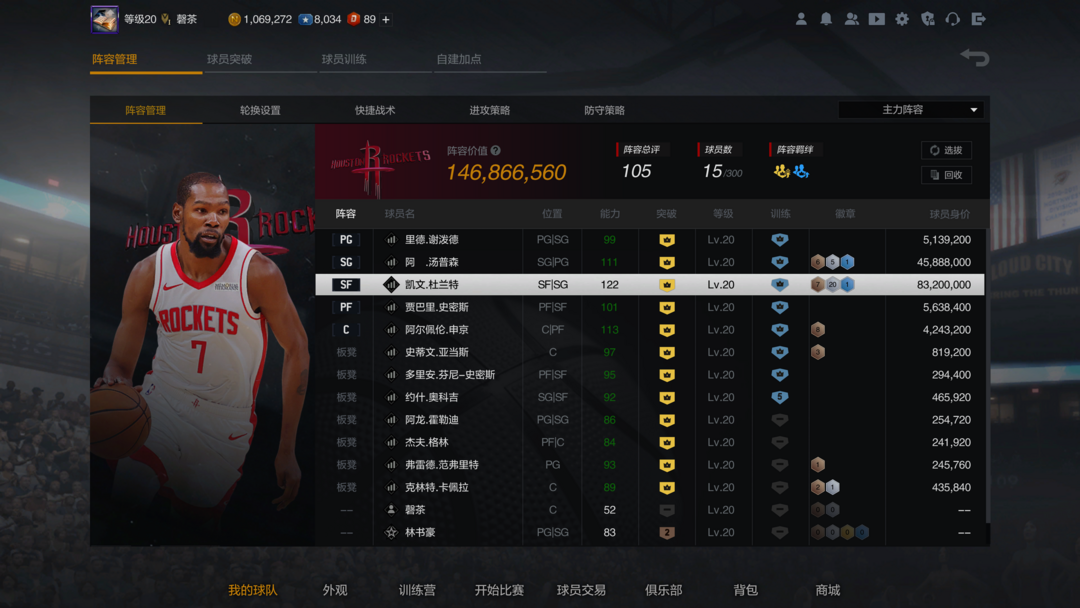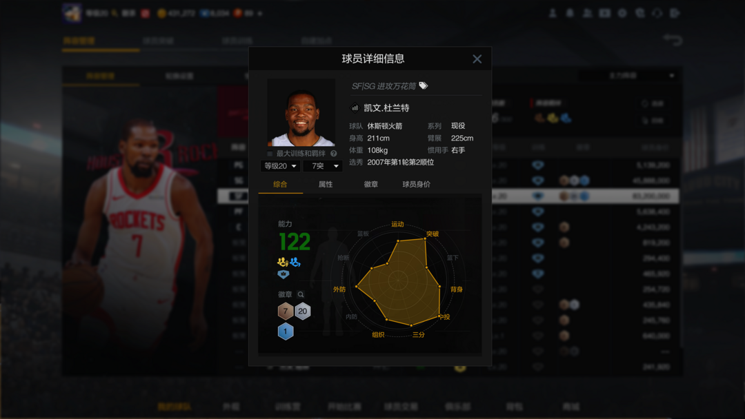 装备描述:❗❗【信誉积分不足】当前积分: 77,不能排位,请老板留意❗❗若以积分不足为由撤单,直接拉黑,请互相节约时间与精力,享受游戏,谢谢。 10突kd凯文杜兰特,2k游戏现役第一人,顶级中投顶级三分,绝佳体验! 10突阿门-汤普森、申京、谢泼德、尹森,火箭未来之星,第一防守阵容! 另有火箭队小史密斯、亚当斯、范乔丹、电风扇等角色球员,绝佳队套体验!! 各模式均可玩耍体验,无球车队、拉屎拖分最佳选择。 祝老板玩的开心!新品上架,欢迎各位朋友游戏体验,好评留言为您半价返现!!