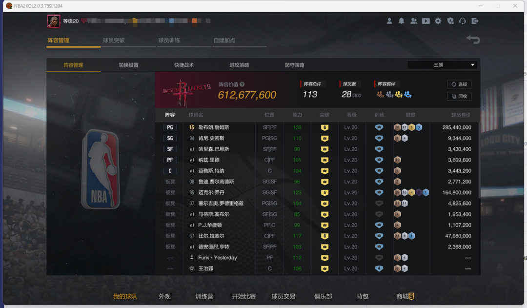 装备描述:已满特训盘勒布朗,禁止强退,谢谢,请文明租号