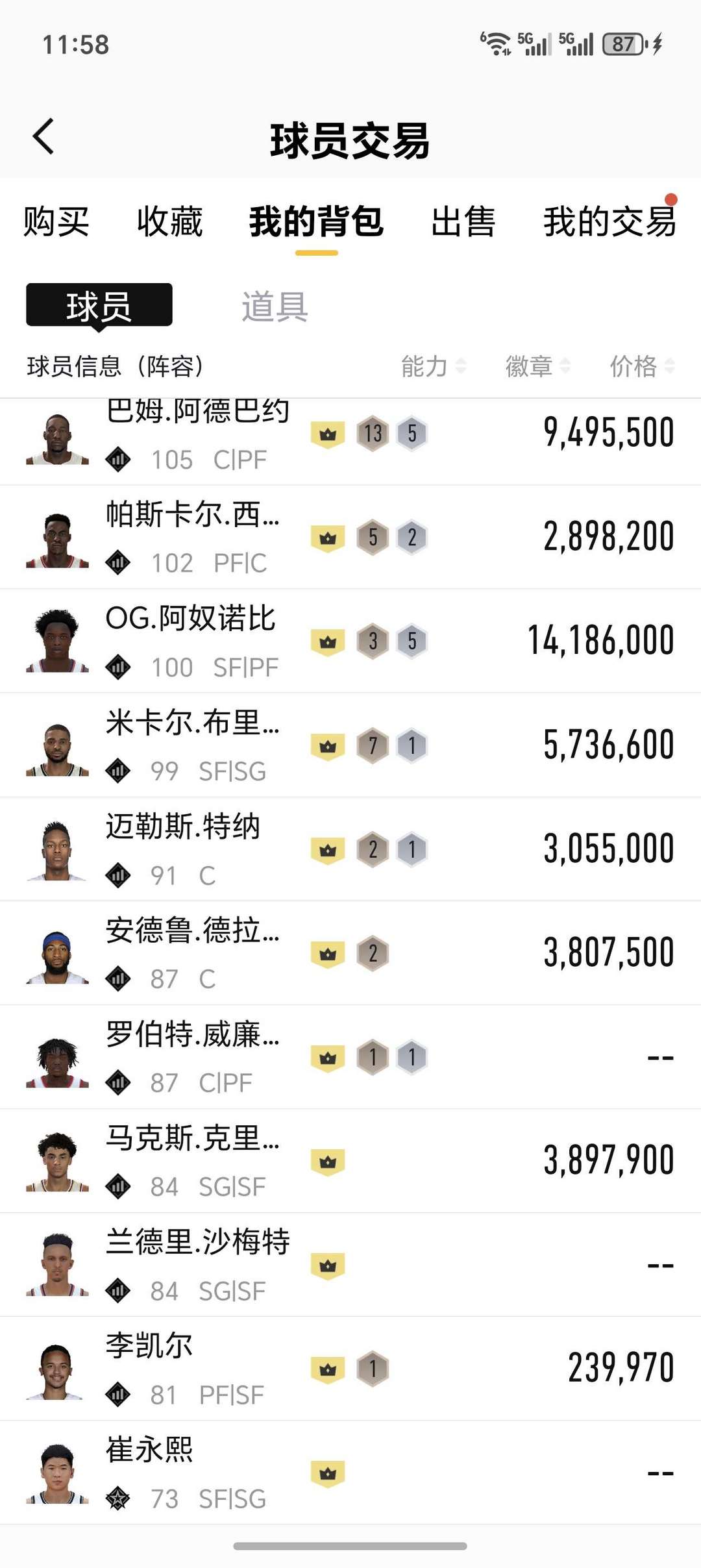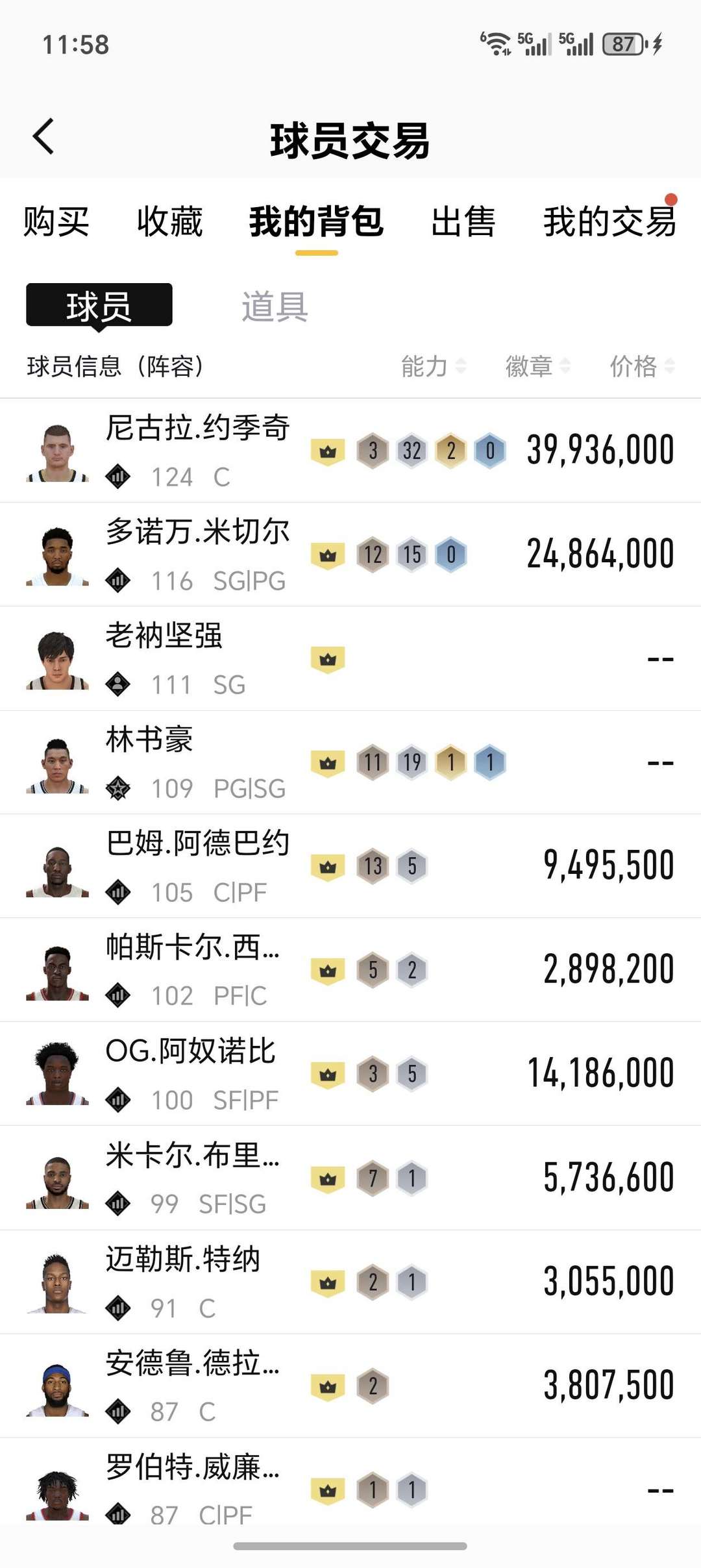 装备描述:满突米切尔林书豪约基奇带队,满突sg自建。可排位赛