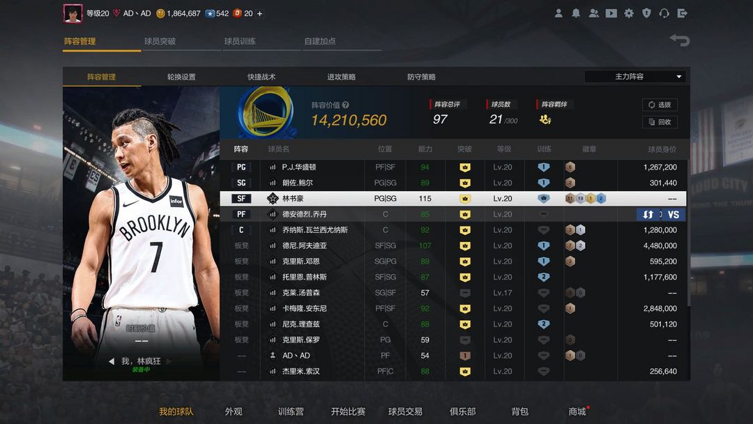 满突满训收藏林书豪,带时刻,可排位,段位超巨。单打持球挡都可以。