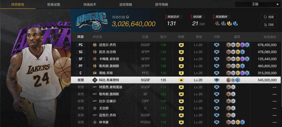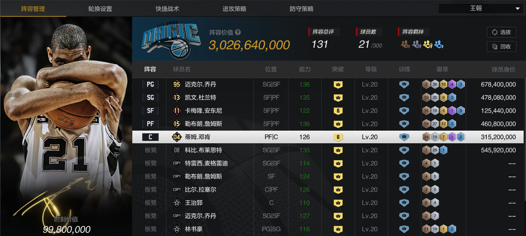 限制: 撤单率<50%才可租用此帐号装备描述:【10双时刻乔詹杜/08科比】【6大时瓜/6大时刻邓肯】【10复刻麦迪/詹姆斯/乔丹/拉塞尔】