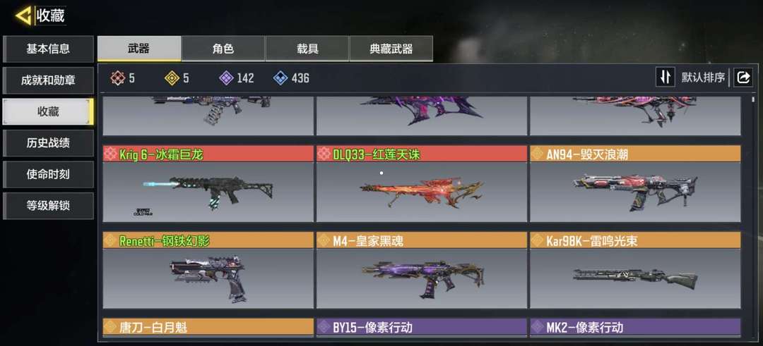 5个神化武器,6个传说武器。一个传说人物。还有一把唐刀。