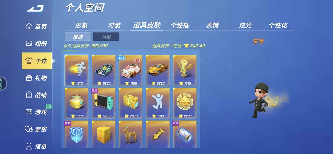 赛季皮肤非常的多道具满级角色全满逃生追捕全在王者以上敬请游玩
