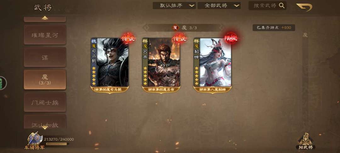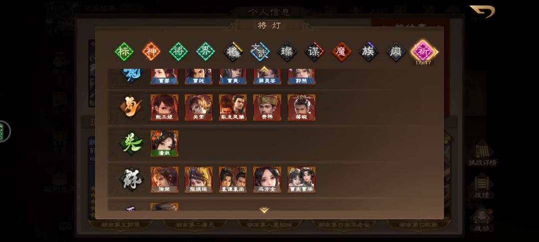 装备描述:三卡外不要动❗❗❗不要逃跑打广gao 祈灯、魔灯亮❗南华老仙(动),祢衡,蒲元(绘卷),神张角(绘卷) 19大祈:郭照(动),薛灵芸(动)徐荣(文和)张琪瑛(动)曹纯(动)曹爽(动)龙凤(动.绘卷)潘淑(动)冯方女(绘卷)曹宪曹华(绘卷)周处(动)费祎(传) 鲍三娘(动) 曹婴(传), 蒋琬、关索、二袁、族钟琰、魔貂蝉 16台:谋鲁肃,魔吕布 魔司马懿 谋董卓 胡金定 SP刘备(动) 谋姜维(动) 谋庞统(绘卷) 谋关羽(动) 藤芳兰 (动) 族钟会(动,绘卷) 族王允 族荀谌 罗宪 界曹冲 界徐盛 7小:陈登(动),王荣(绘卷),花蔓,卢氏(动),族荀攸,刘辩(动),族荀攸 其他:界荀彧(绘卷)、刘焉(绘卷),神孙权,神典韦,张陵(动),SP张郃(绘卷),SP马超(绘卷) 黄承彦,孙皓(动),彭羕,族钟繇,族王凌,族钟毓,孟达,曹嵩,朱八百